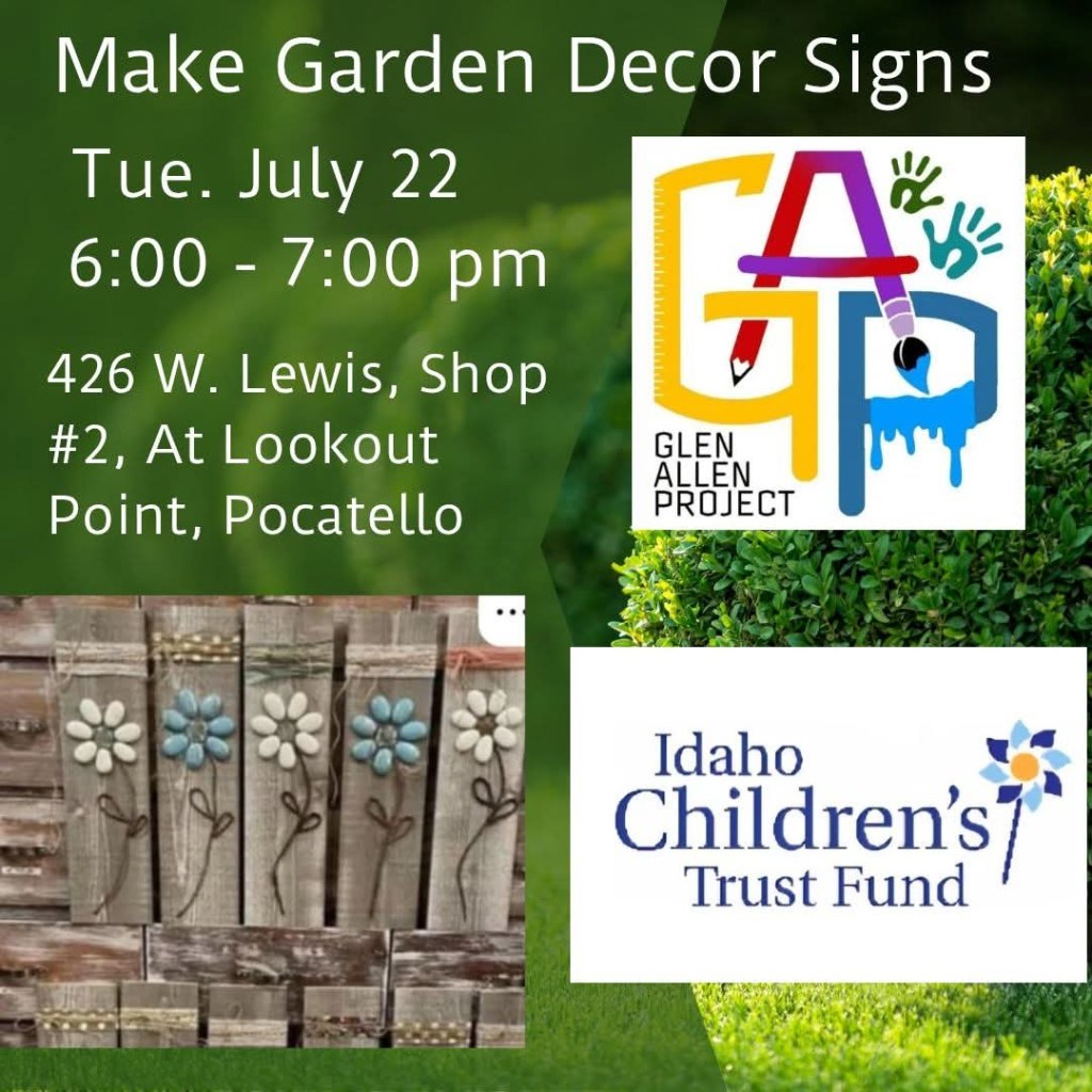 #ArtSavesLives #FreeArtClass #PocatelloEvents #DIYGardenSigns #CommunityFun #LookoutPointArt #GlenAllenProject